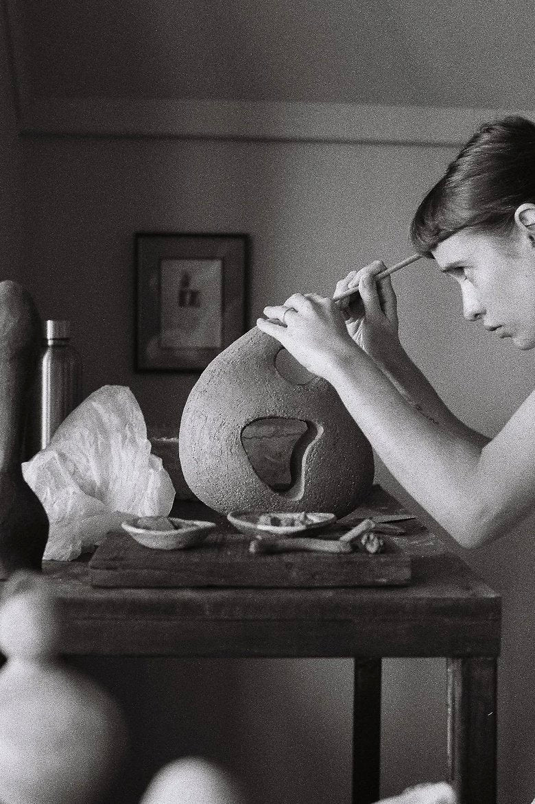 Emma Lindegaard is a self-taught ceramic artist working from her shared studio space at Shacks, in Walyalup/Fremantle. Her objects are built entirely by hand using the coiling method and minimal tools, often taking days to complete. This slow, tactile process allows for thoughtful modifications to shape, texture and balance, resulting in pieces that feel intentional yet instinctive.